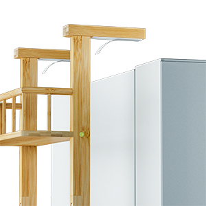 The adhesive strips under the hanging bars securely fasten it to the fridge side; remove the protective cover before installation.