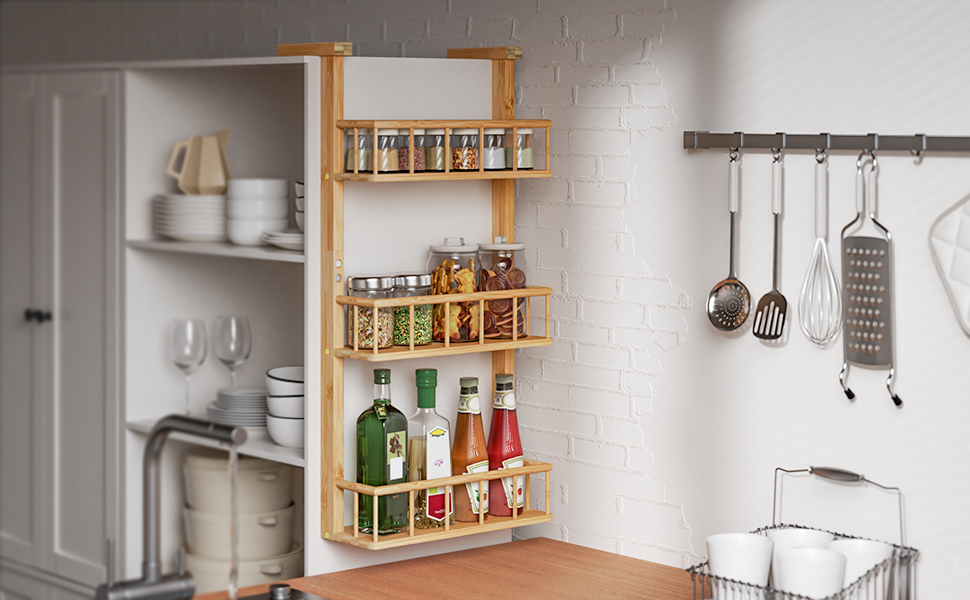 This hanging spice rack fits over the side of the fridge, neatly organizing spice jars, seasonings, cans, and bottles while saving counter space in small kitchens.