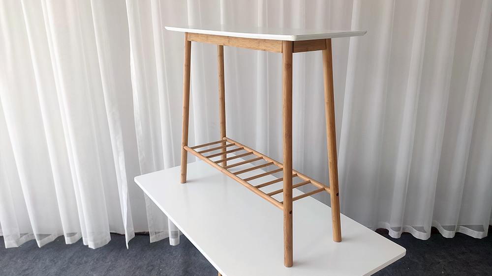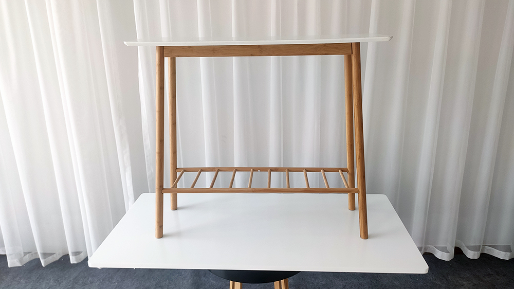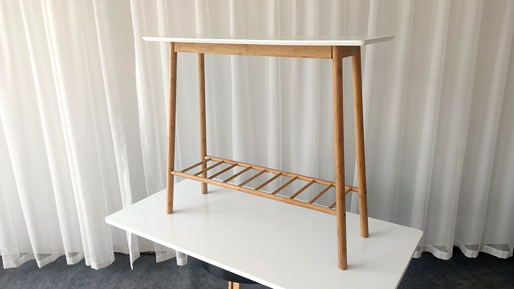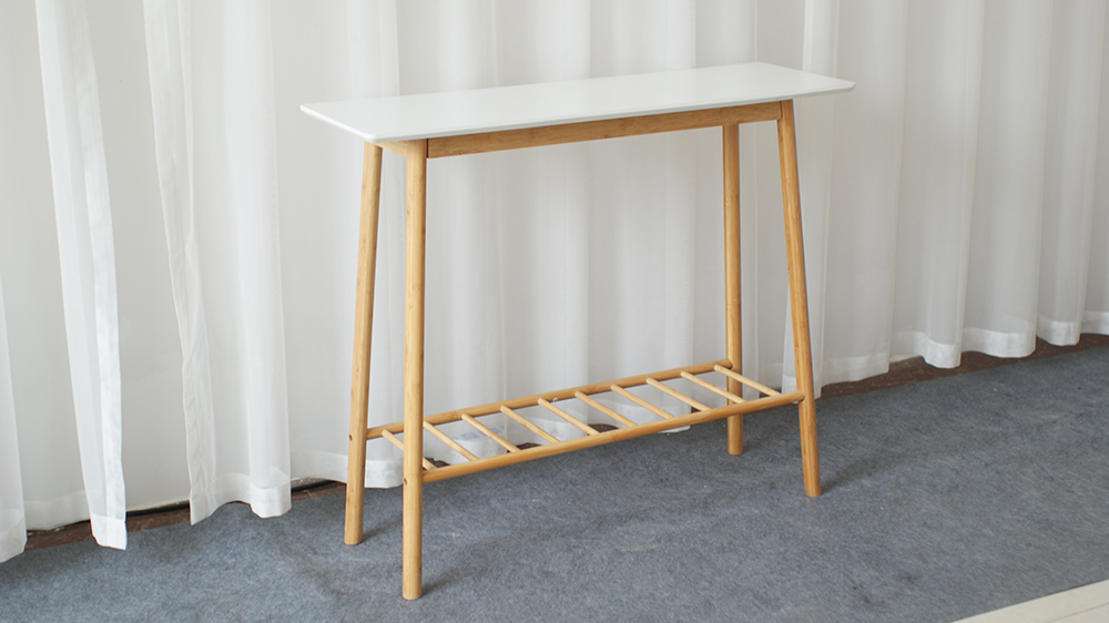 أرجل طاولة الكونسول والقاعدة مصنوعة من الخيزران المتين والصلب ، وهو مورد قابل للتحلل البيولوجي ومستدام. الجزء العلوي مصنوع من MDF وهو أملس للغاية ولا يحتوي على عقدة ، مما يجعله قاعدة رائعة للرسم والتشطيب.