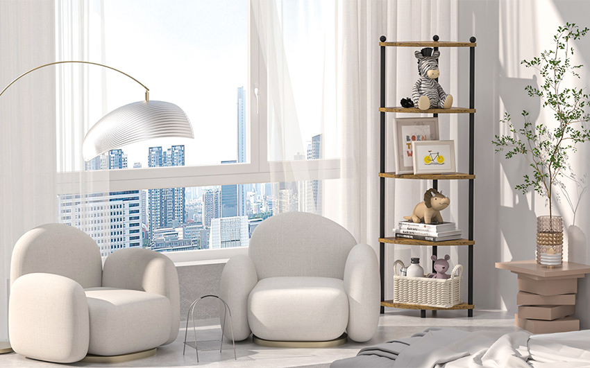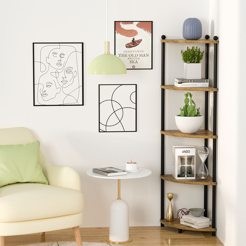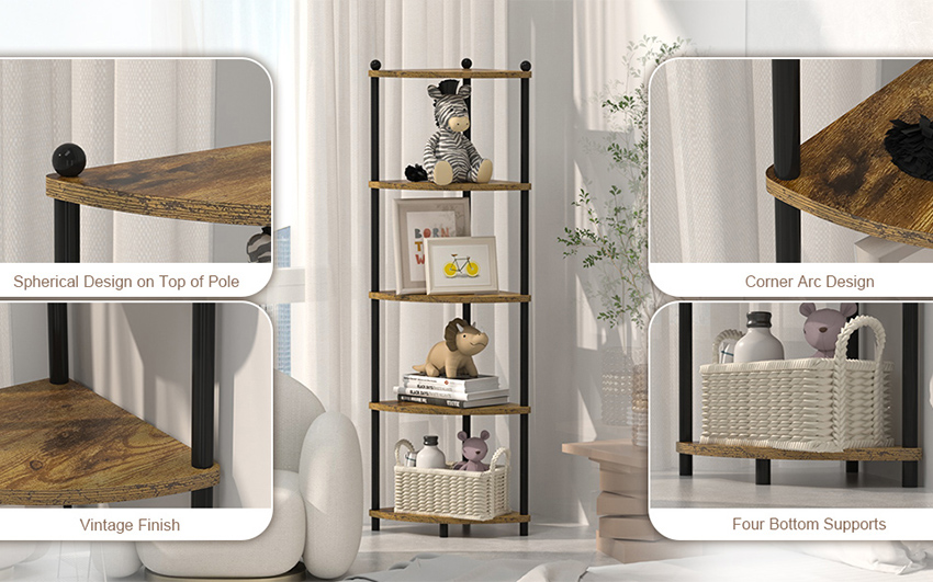 جميلة وراقية: يوفر رف الزاوية هذا لمسة صناعية ويمنح الغرفة طرازًا أنيقًا. تضيف الزخرفة الدائرية في الأعلى إلى الجمال المعماري لرف الزاوية. وتصميمها الفريد يجعلها مميزة بصريًا في منزلك.