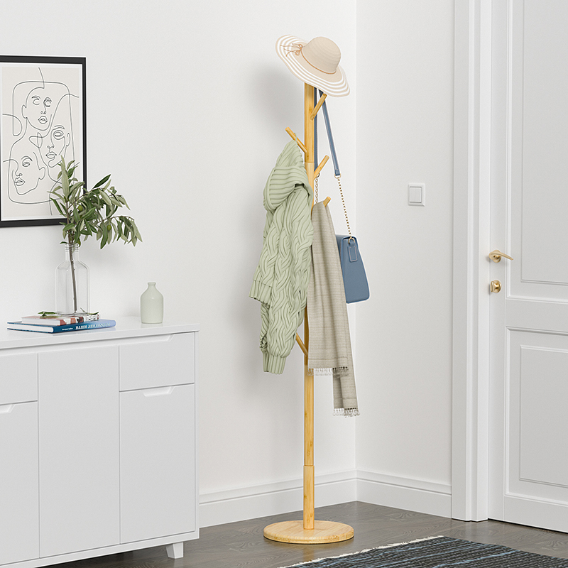 رف المعطف مصنوع من مادة الخيزران والخشب عالية الجودة، وقدرة تحمل قوية، ومستقر ومتين، وليس من السهل سقوطه. يمكن دمج التصميم الأنيق والكلاسيكي بشكل مثالي في مجموعة متنوعة من أنماط ديكور المنزل.