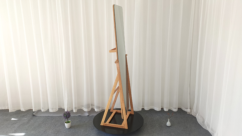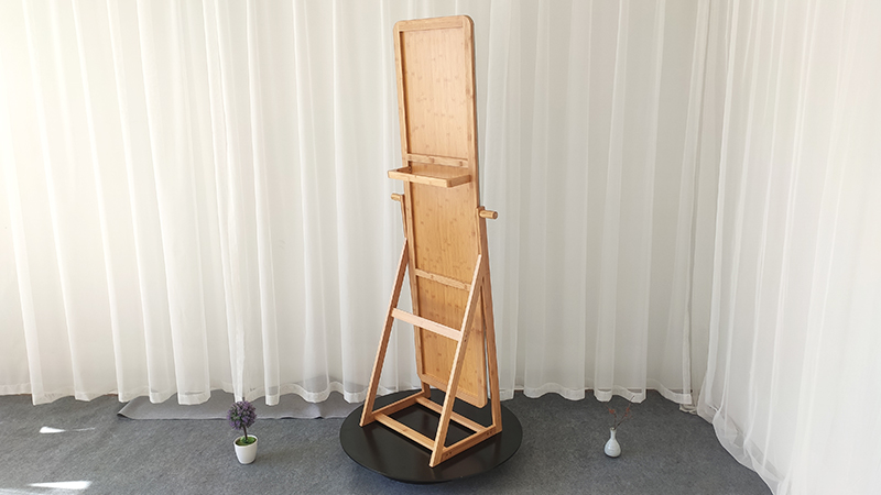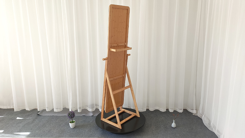 Großer Spiegel mit Aufhängestange auf der Rückseite für Kleidung.