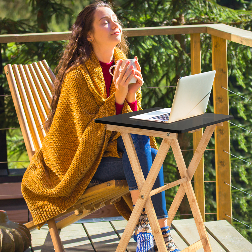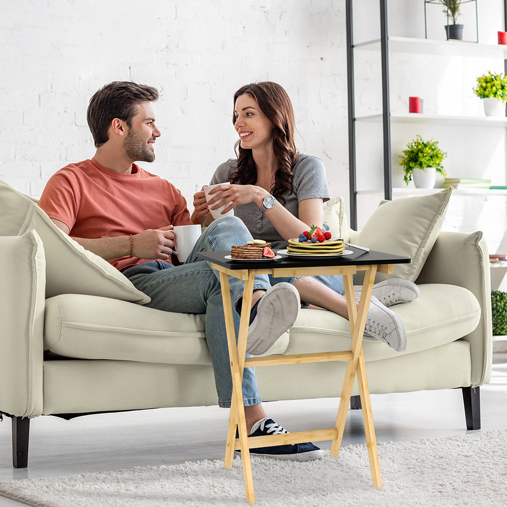 KOMPLETT MONTIERT: Die freihändigen TV-Tabletttische sind vollständig montiert und können zur Verwendung einfach flach zusammengeklappt oder zusammengeklappt werden – für eine komfortable Nutzung. Sie können einen klappbaren Tabletttisch drinnen und draußen verwenden.