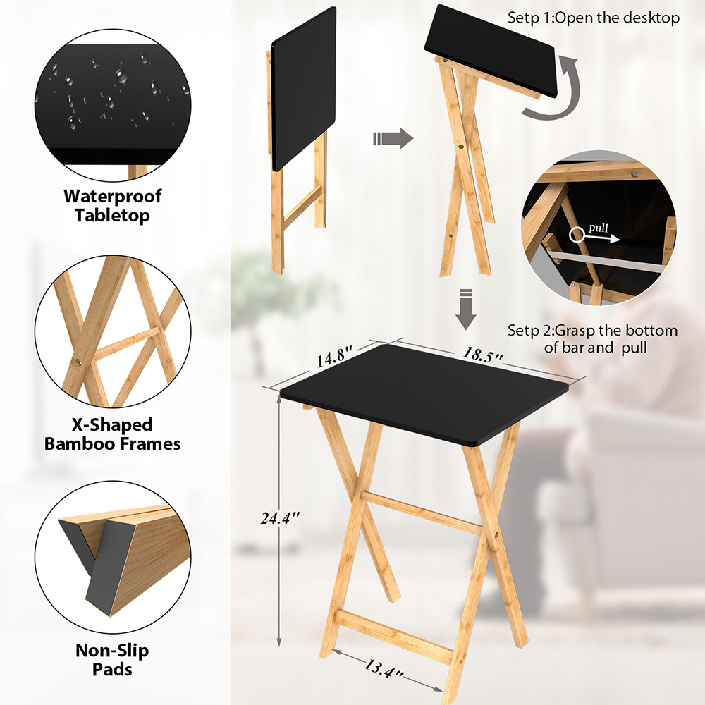 EINFACHE REINIGUNG: Der TV-Tabletttisch ist wasserdicht und leicht zu reinigen. Wischen Sie den Fernsehtisch mit einem Lappen ab, um Schmutz zu entfernen.
