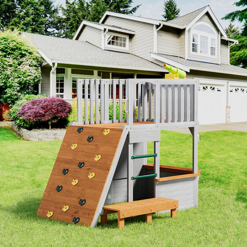 ● Exclusive design,CPC certification.lookout post wooden playhouse inspires pretend play and outdoor fun! It's the buildable structure that kids can climb on, scramble under, and roleplay in.