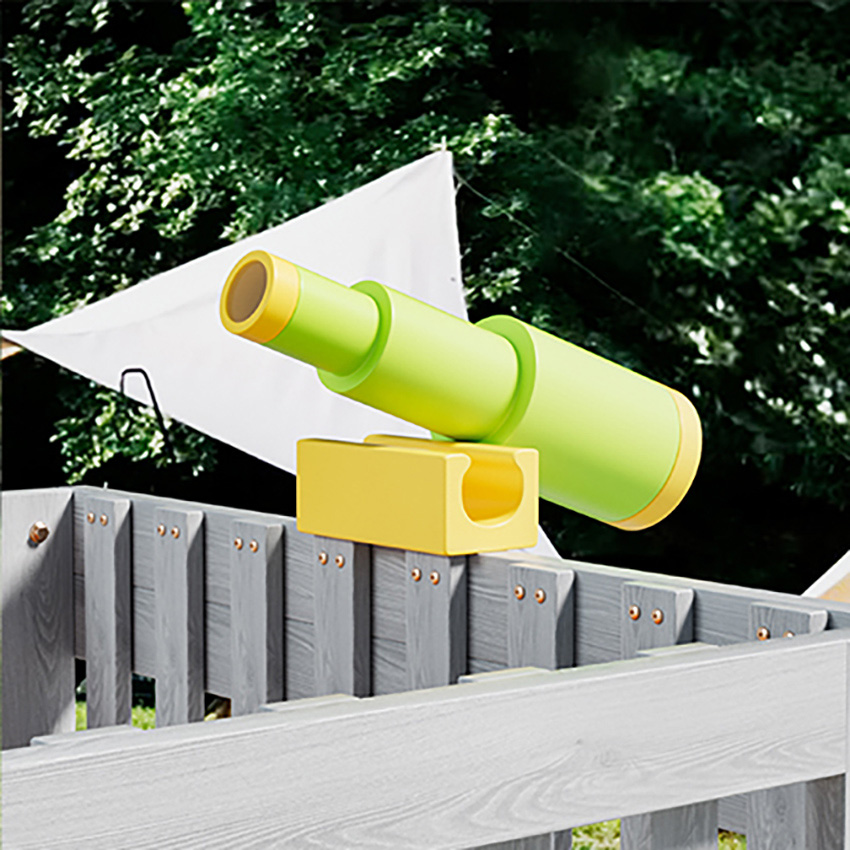 ● 2 levels mean twice the fun your kids can climb the ramp or ladder to the upper platform and then keep watch for intruders! The robust stepping stones on the ramp ensure a good grip for little feet. Inquisitive kids can spy on their friends or watch wildlife through the telescope.