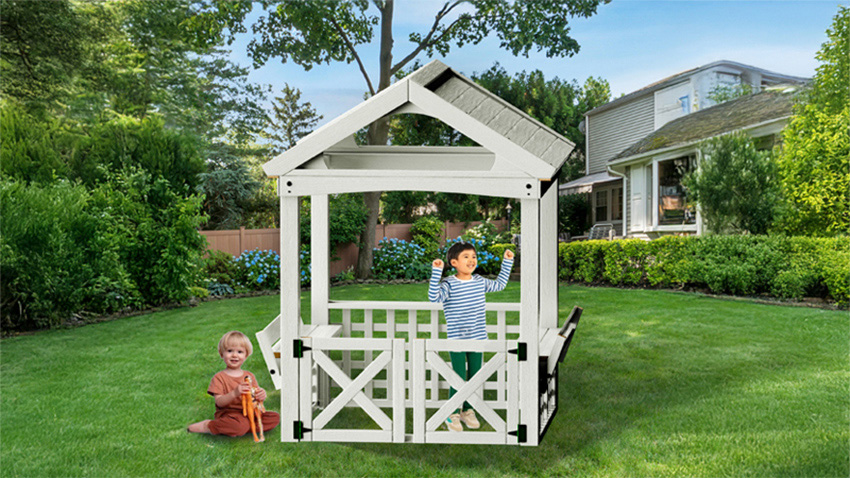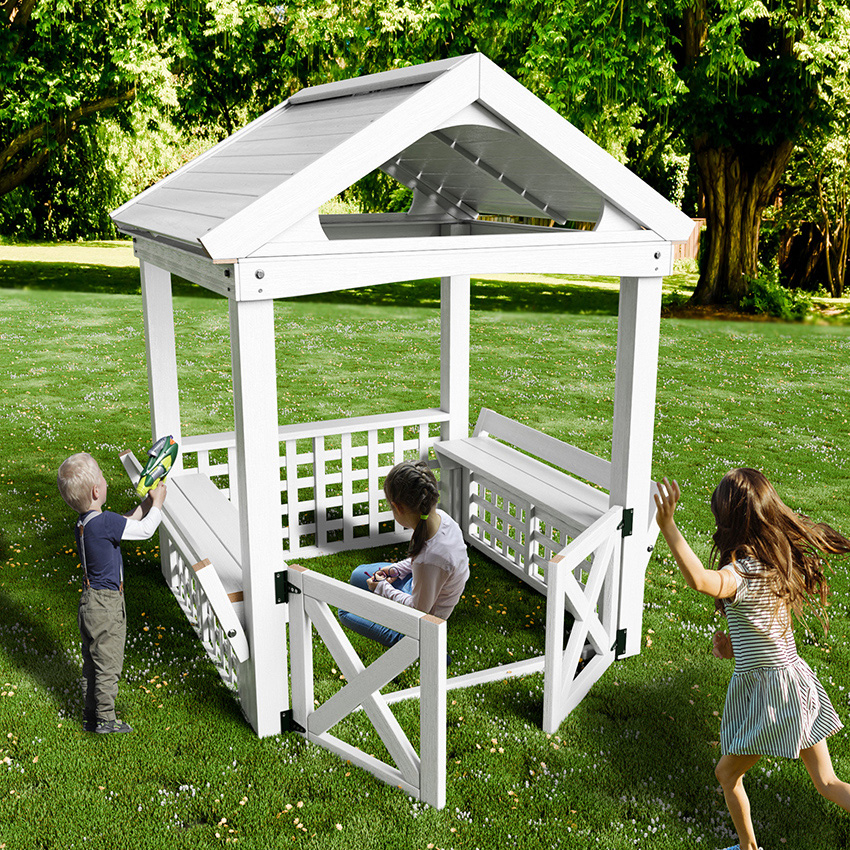 Offering A Host Of Exciting Features, This Backyard Playhouse Puts The Fun Into Multifunctional! It's A Great Way To Get Your Kids Off The Couch And Out In The Fresh Air. It Gives Youngsters An Interesting And Safe Space To Roleplay With Their Friends While Learning Valuable Socialization And Teamwork Skills. Your Kids Will Have Their Own Secret Clubhouse, Complete With A Roof To Provide Shade, A Bench Where They Can Hang Out, And Doors They Can Scramble Through.