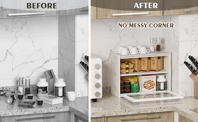 Our bread box is a multifunctional storage box, it can store fruits, potatoes, condiments, etc. as food storage to keep your kitchen countertop tidy, or store your snacks, vitamins, etc. as an office desktop storage, organize all you want! By using this bread box, the desktop is more tidier. The things on the desktop are scattered in a pile when not used.