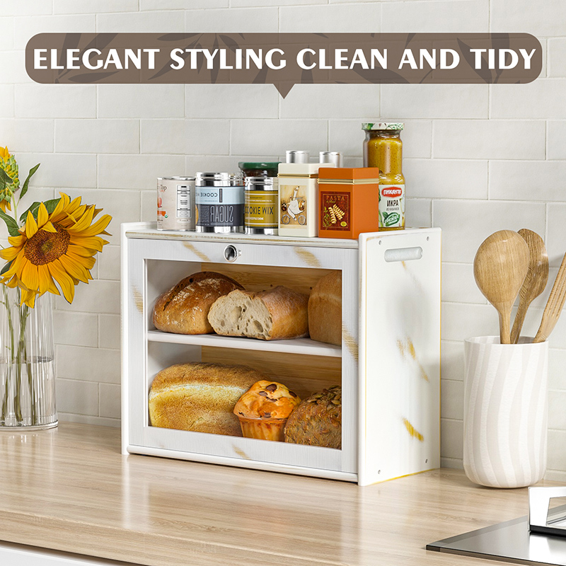 Compared with an airtight bread box, our bread container has 5 holes on the back to promote air circulation to keep the bread fresh longer. The transparent door panel allows a clear inside view to keep you updated on when you need to buy or bake more to meet your family's needs.
