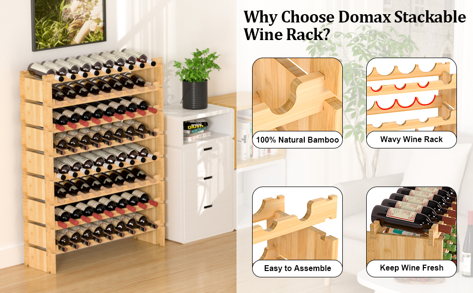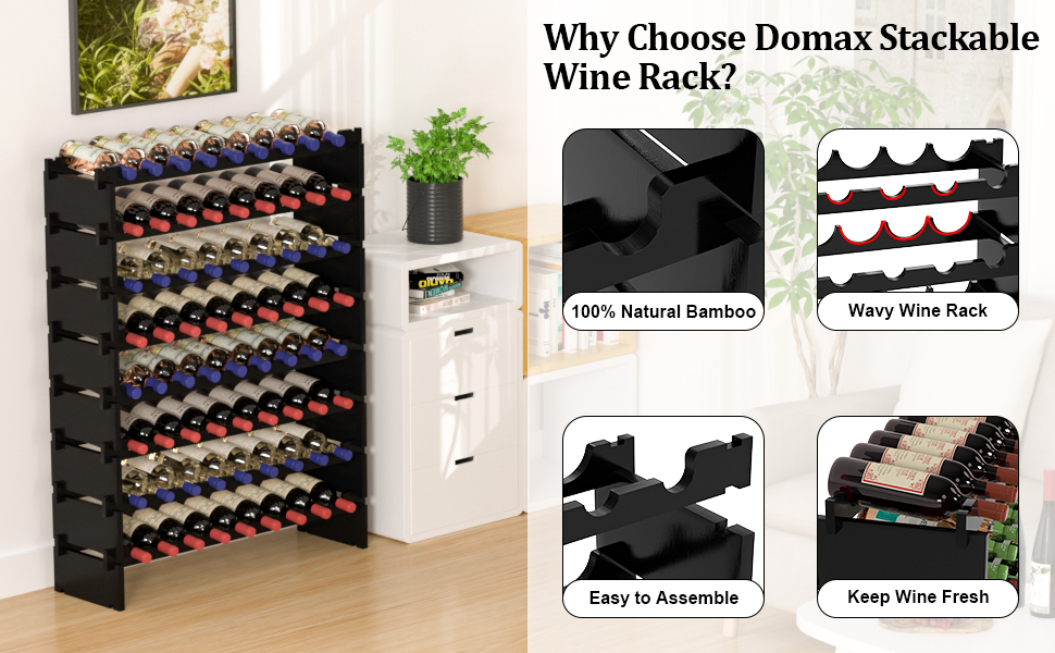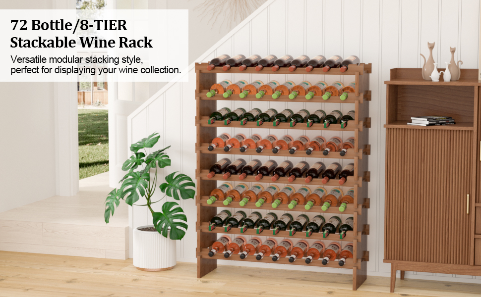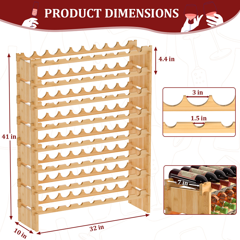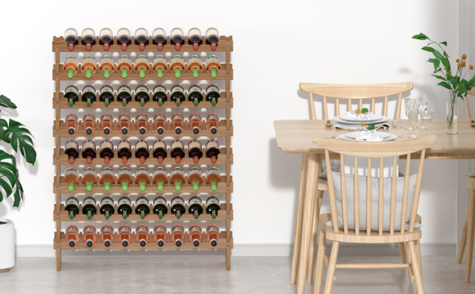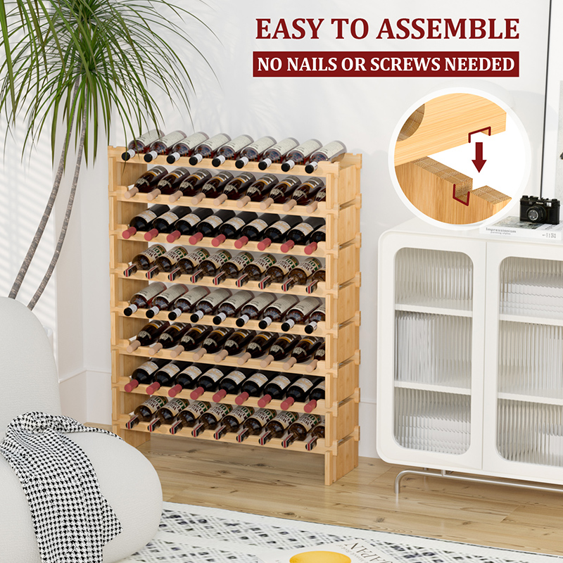 Each bamboo board has deep grooves and is tightly fastened to each other without loosening. The 8-tier compact design saves a lot of space and holds enough wine. You can choose single layer or stacked use.