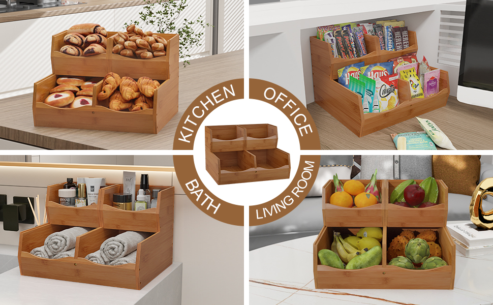 Funkcionális & sokoldalú: Nagy kapacitású bambusz tárolódoboz a tisztításhoz & rendezett konyha vagy kamra. Kiválóan alkalmas zöldségek, gyümölcsök, rágcsálnivalók és tea tárolására.