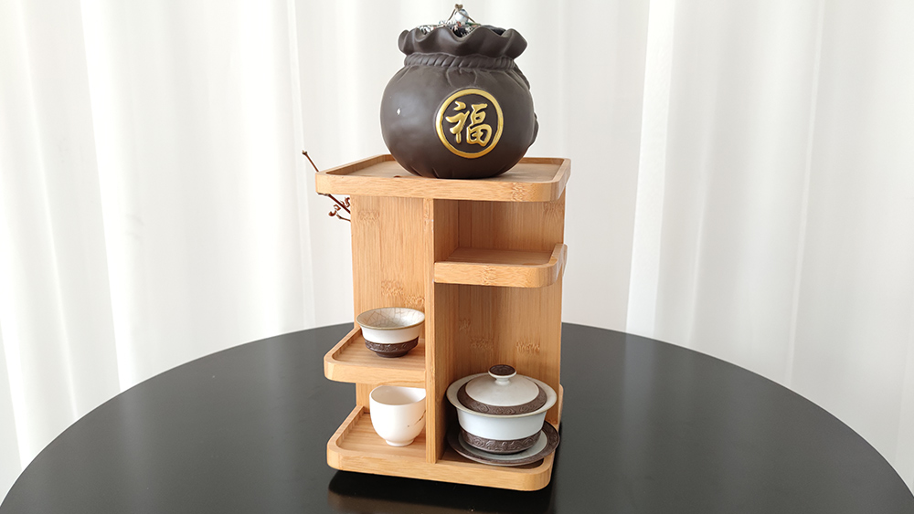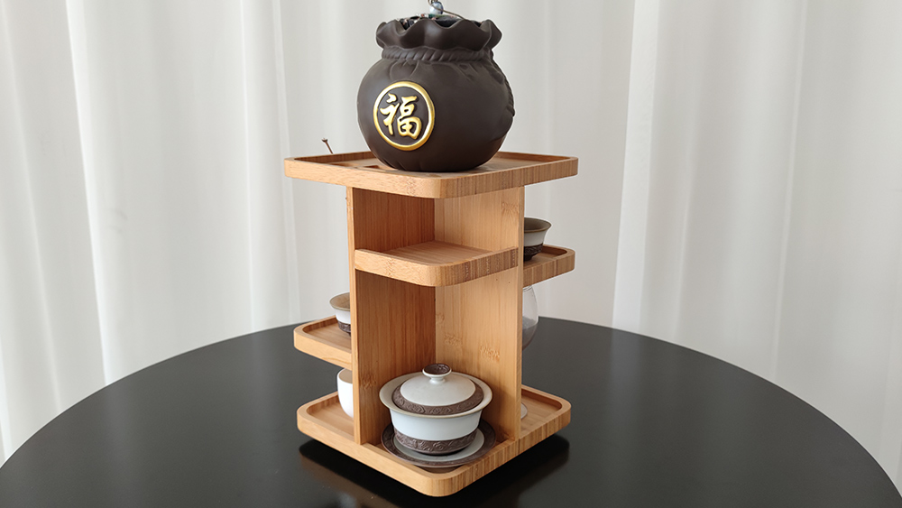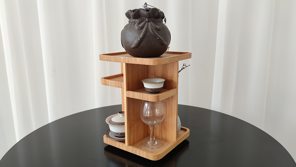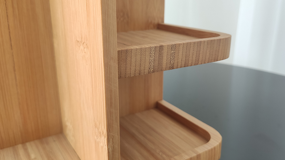 Cukup putar pengatur untuk menyimpan atau mengambil produk pada baki bertingkat di setiap sisinya.