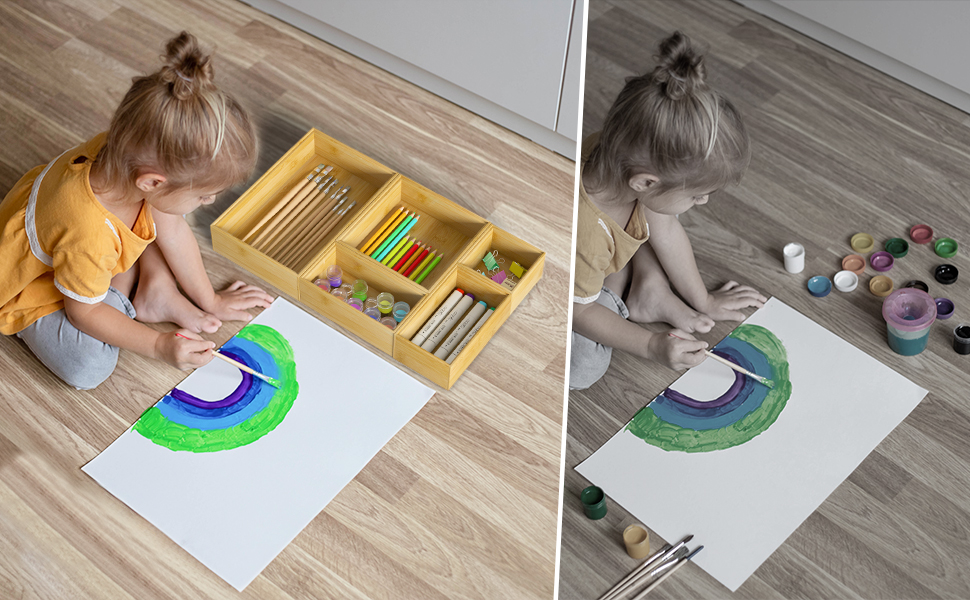引き出しオーガナイザーボックスは多用途で、急いでスペースを節約したり、化粧品の整理に使用したり、机の引き出しに入れたり、上部にペンを置いたりするのに使用したり、ガレージでも非常に便利です。