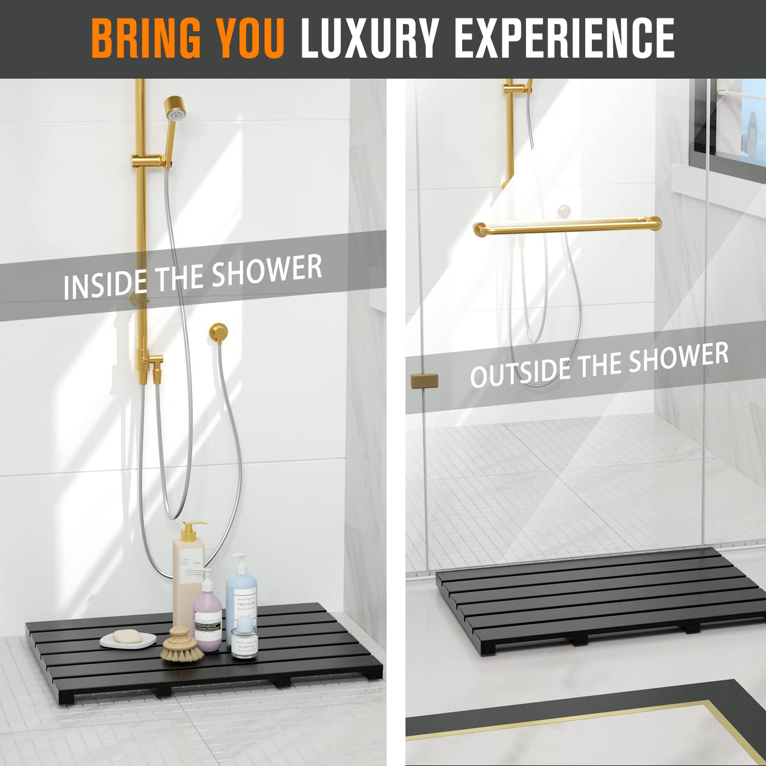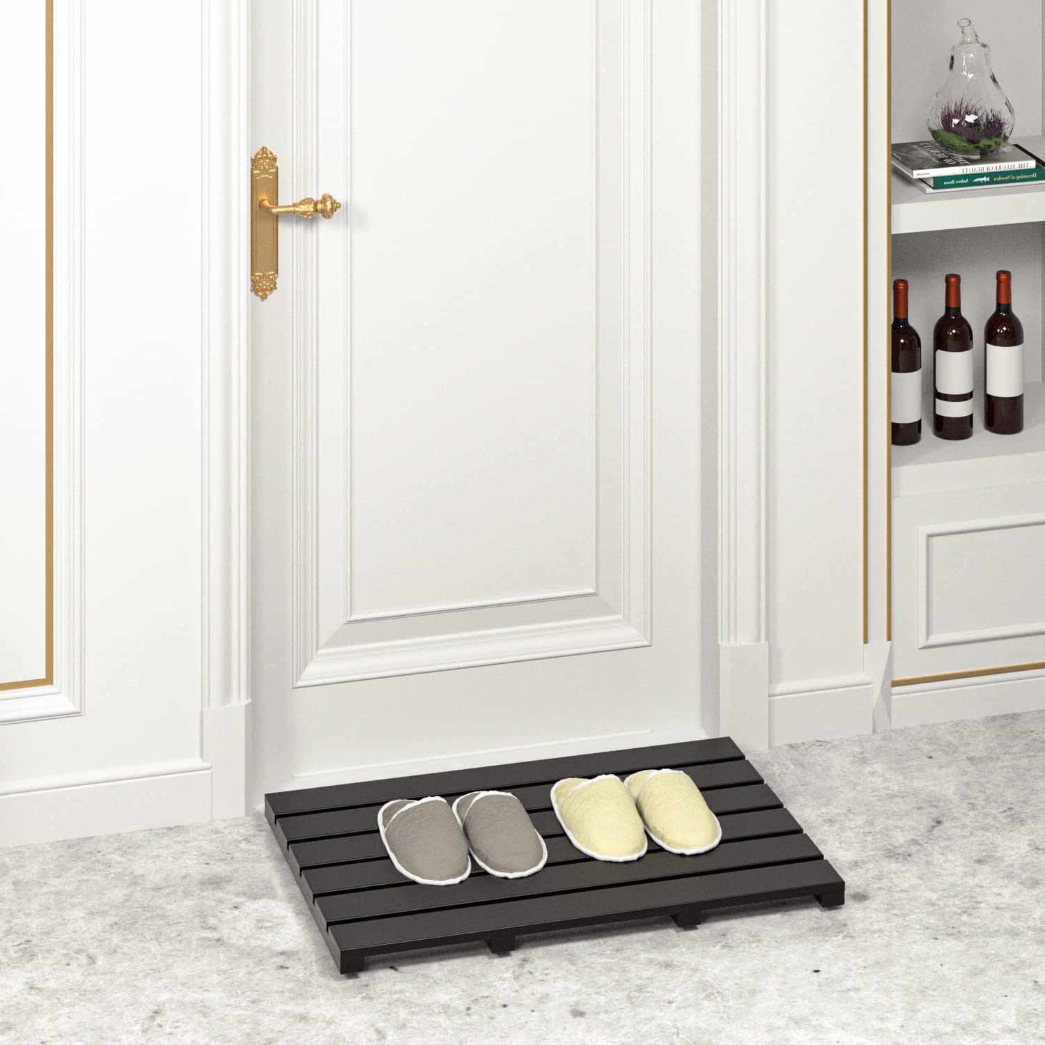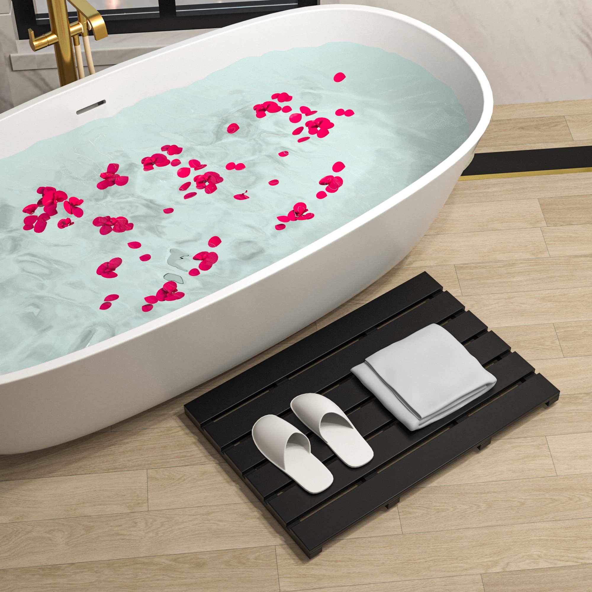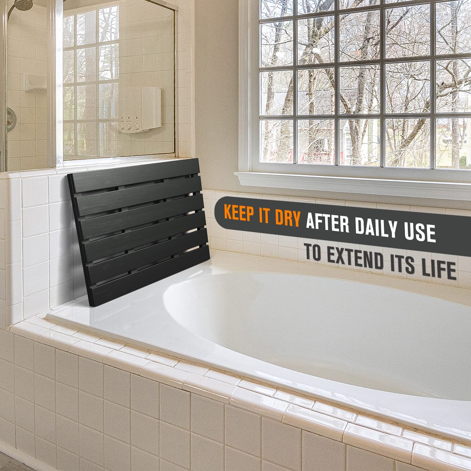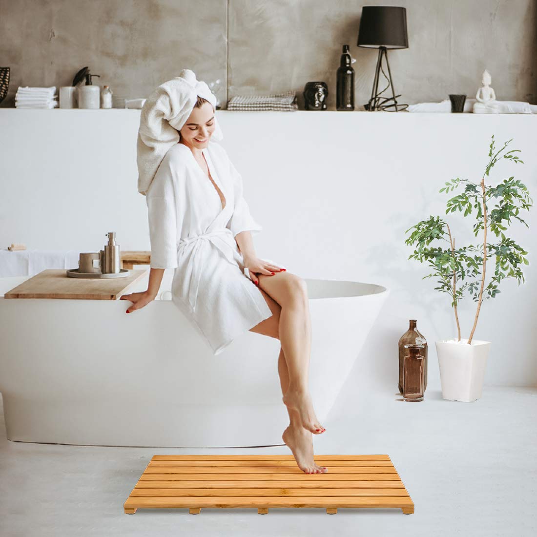 The bamboo bath mat is waterproof and has a slatted surface that conduces to drainage; unlike those cloth mats in the market which will absorb a lot of water.