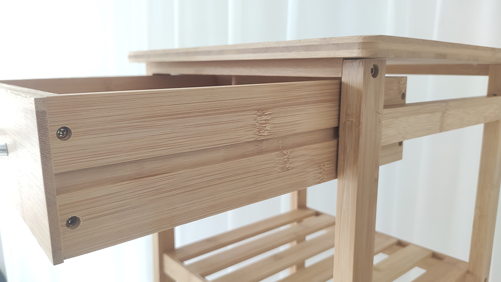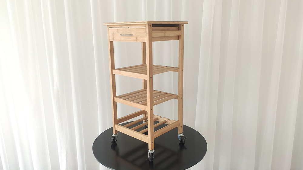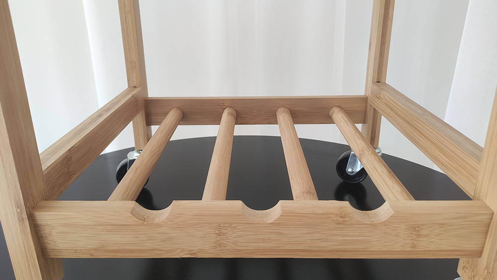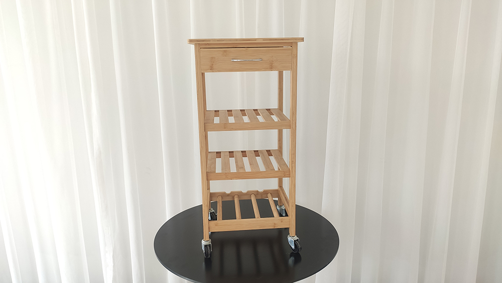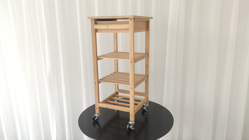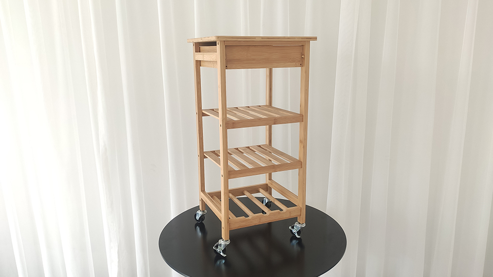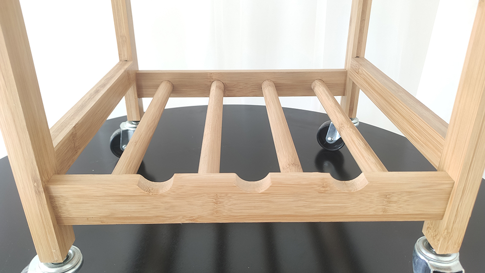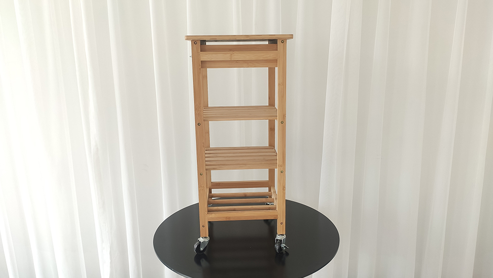 STURDY AND DURABLE-Made of durable bamboo construction, finish on surface prevents mold. Equipped with 4 smooth omnidirectional heavy-duty wheels which 2 are lockable, utility handles for easy movement and scratch-free floors.