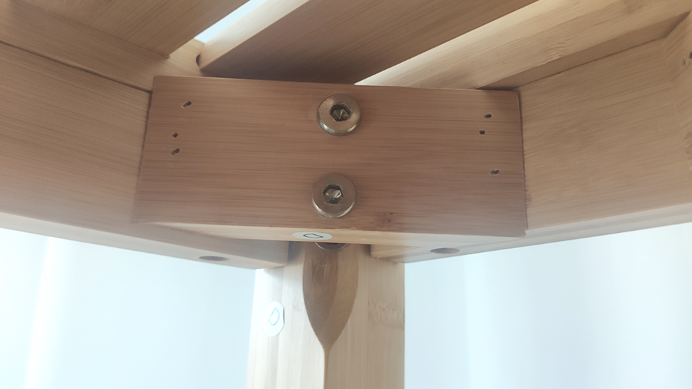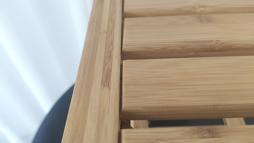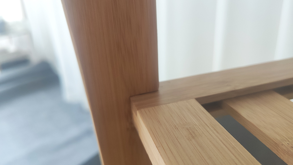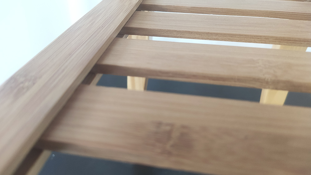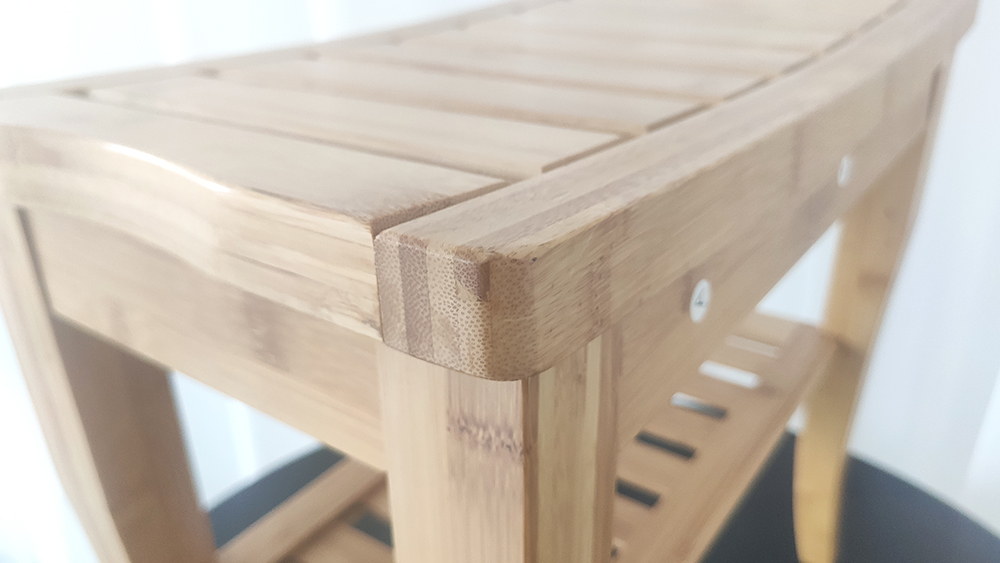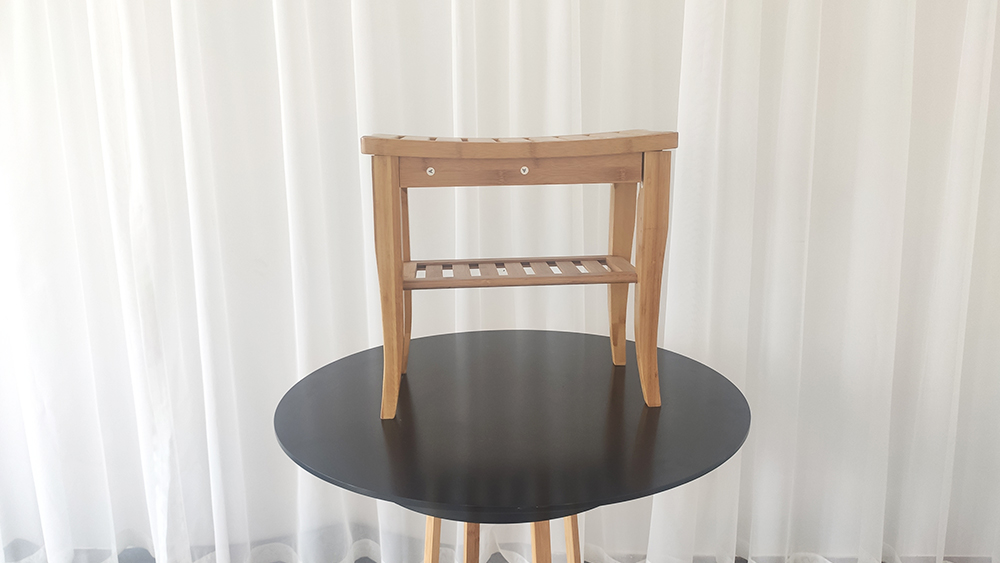 Nicely Made Stool with Thick and Stiff 100% Mountain Bamboos as Raw Material. Strong Enough to Hold More Than 150 Pounds Weight. The Second Shelf Makes It Firm and Holds Your Shoes or Other Stuff at the Same Time.