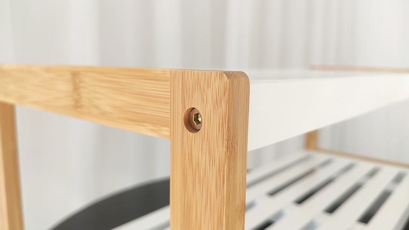 Different from other shelves/stands with PVC legs, our tiered design corner shelves are framed with 100% natural wood bamboo legs and durable laminate MDF.