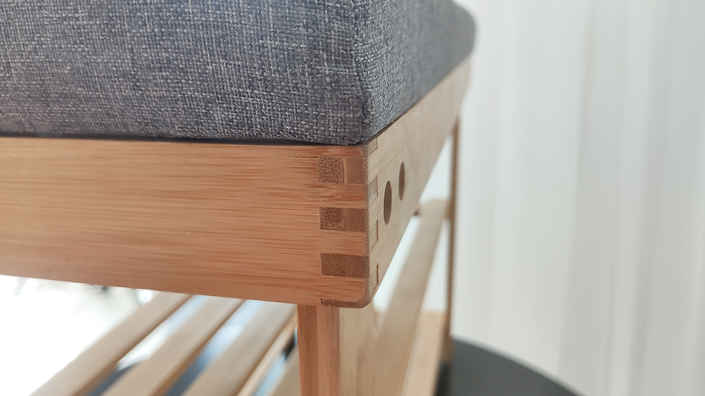 This shoe bench is made of 100% bamboo wood, natural and harmless, especially, the shoe rack bench itself surface is smooth, the handles with round corner design, no harm to your belongings or children.
