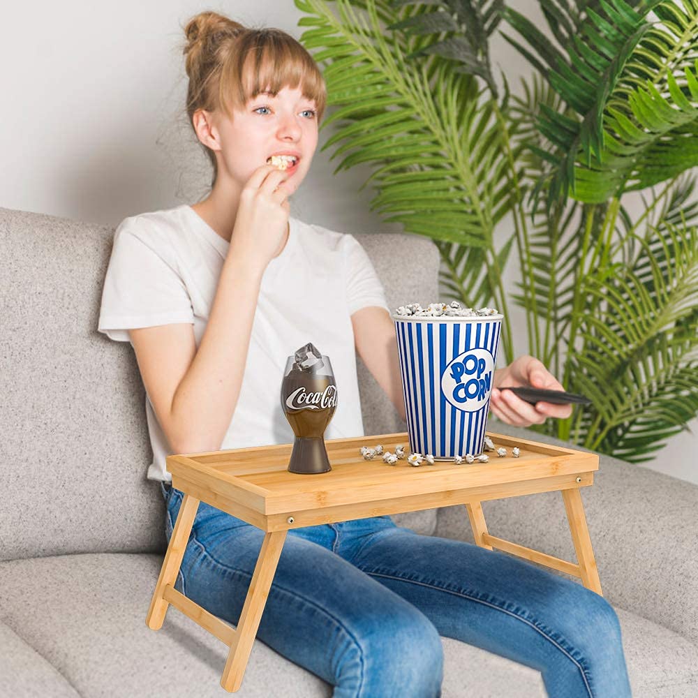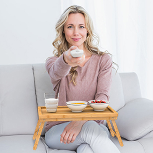 Enjoy breakfast in the bed with this serving tray. Made of 100% nature bamboo, The natural color of bamboo adds a modern and stylish atmosphere to your room. equipped with folding legs makes the serving trays easy to store and move. It is portable so you can take it anywhere in your home or outdoor.