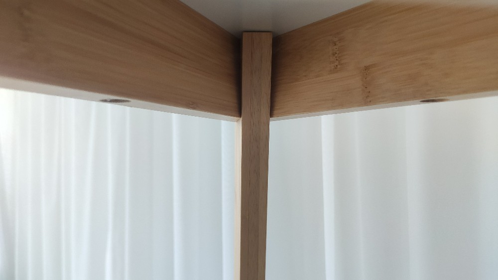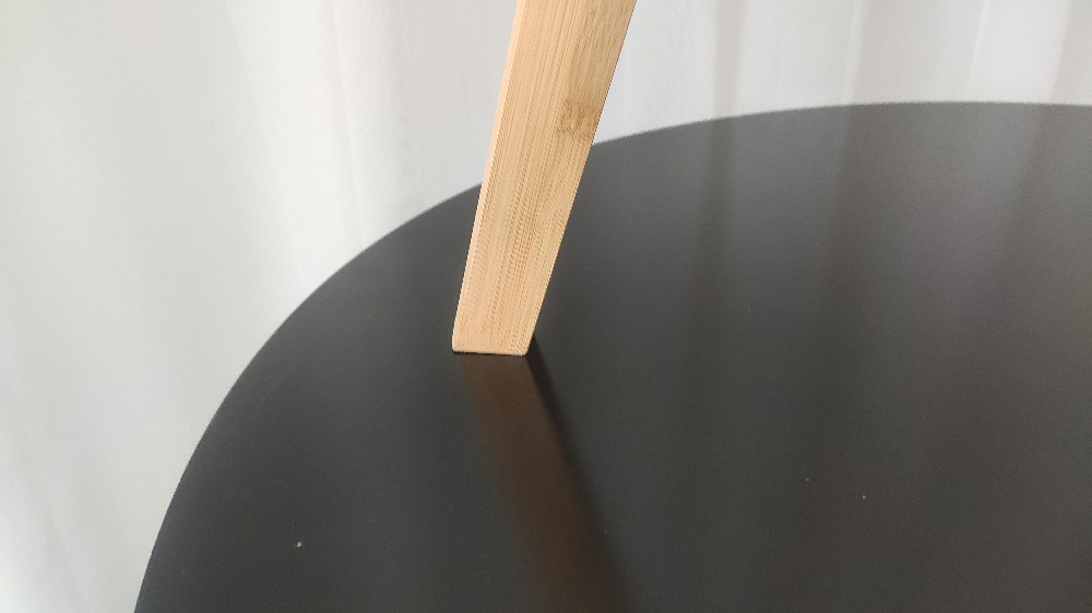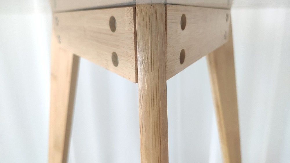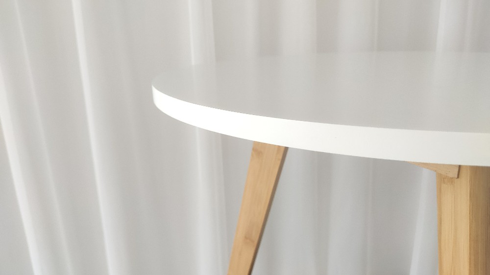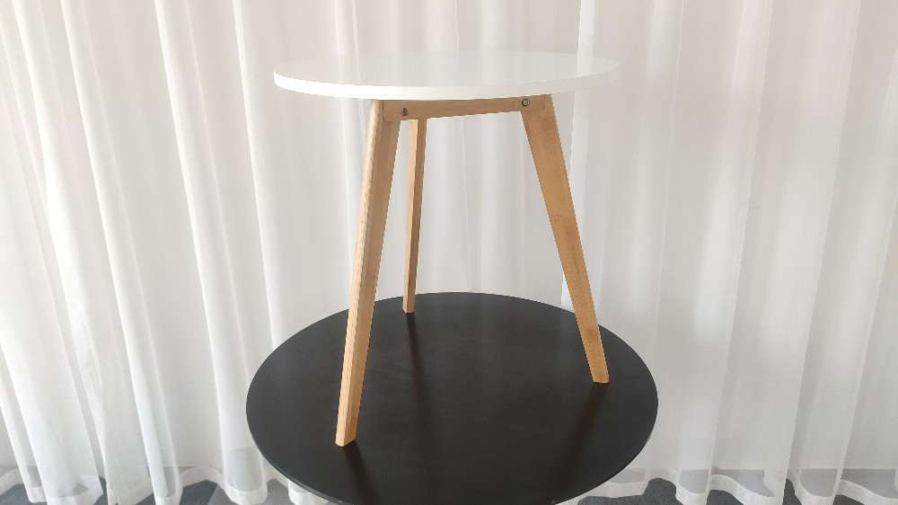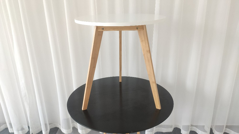 The tabletop and legs of this round side table are connected by thick solid wood blocks, which prevent the tabletop from bulging due to excessive installation force. The legs of the small side table have a triangular structure which is very stable.