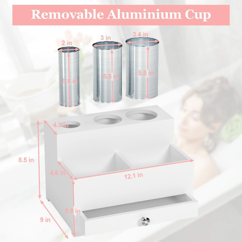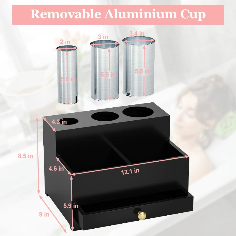 [3 Removable Steel Cups] Our hair styling tools organizer is equipped with 3 steel cups, which can be used as curling iron holders, hair straightener holders, blow dryer holders & combs, providing a safe place to quickly cool these hair tools and store them safely.