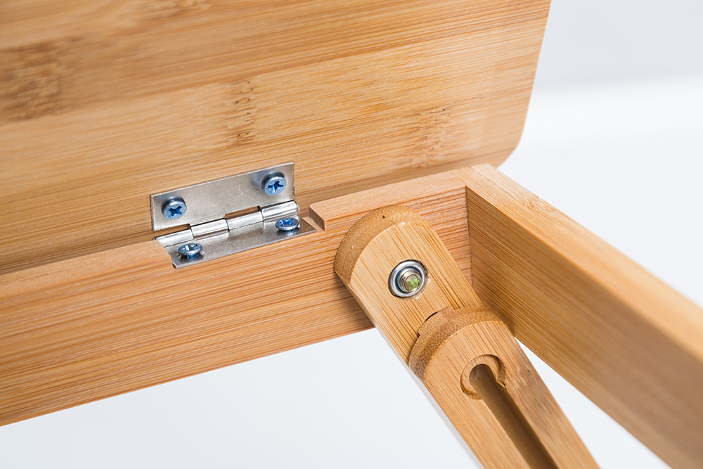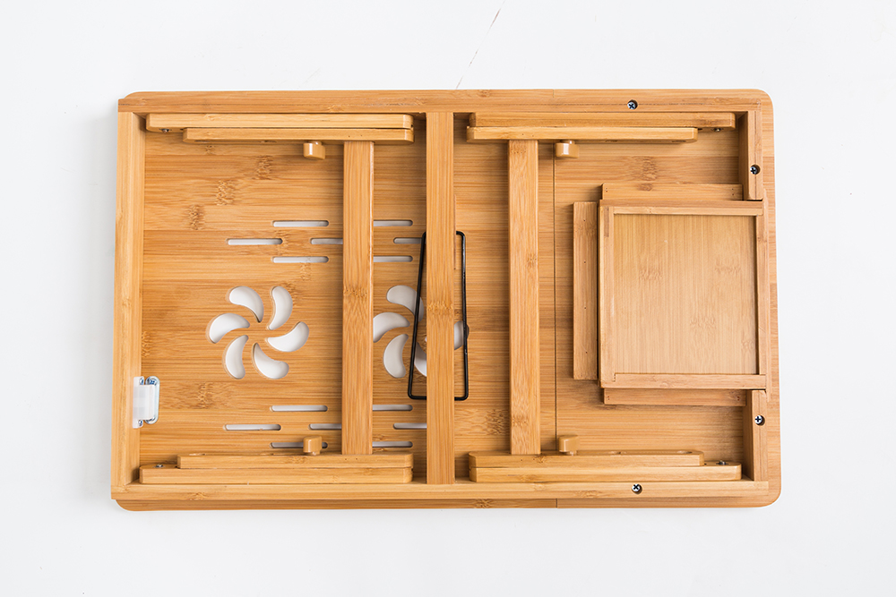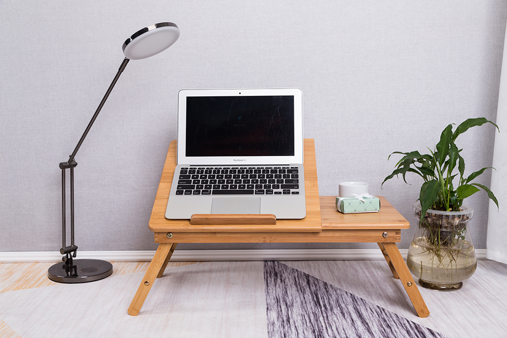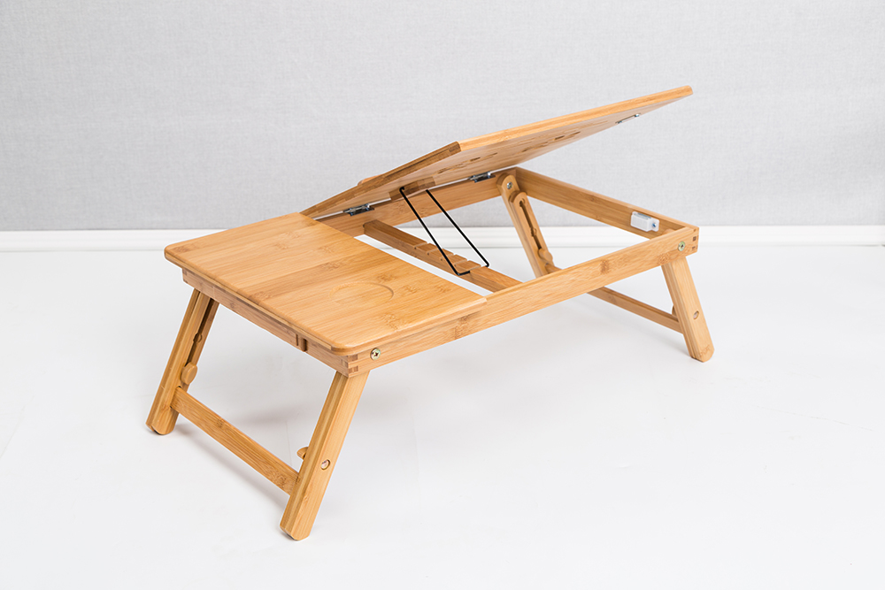 This laptop bed tray is finished with natural sturdy bamboo board, Tilting, folding, stable, very high quality, and easy to store with 45lbs load capacity.