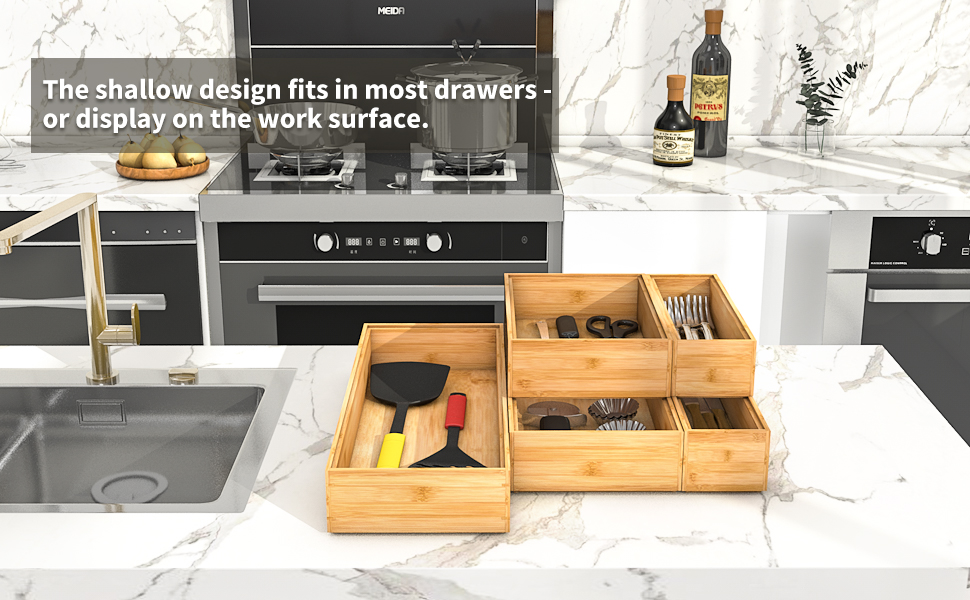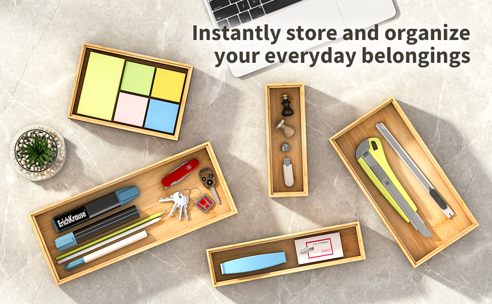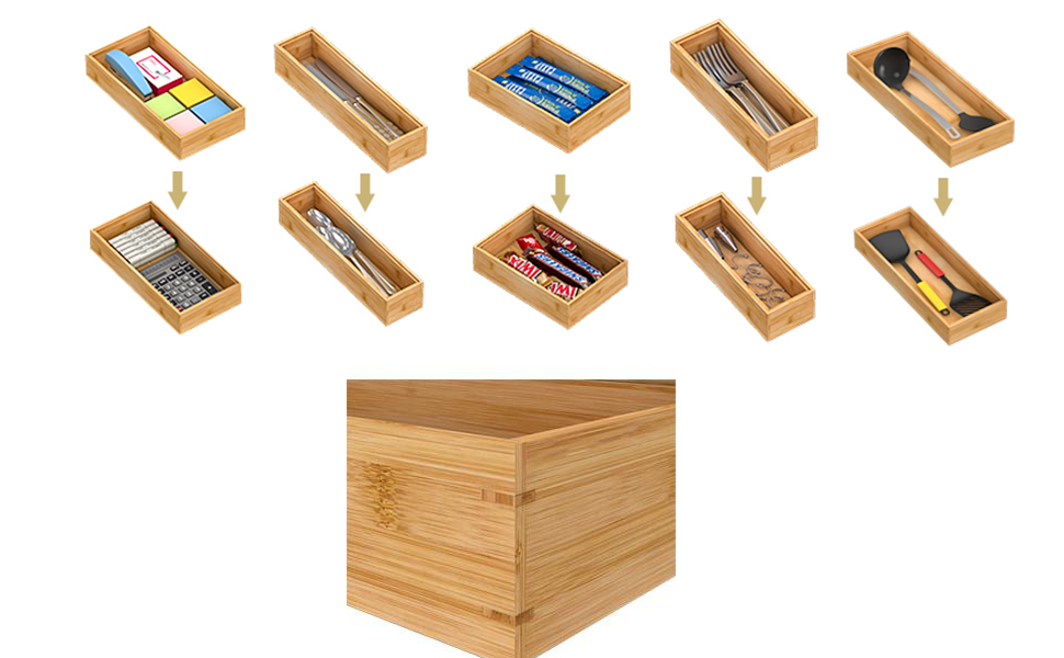 The drawer organizer is fully made of natural and eco-friendly bamboo, which not only helps organize your space but also gives a fresh and natural look to your home.