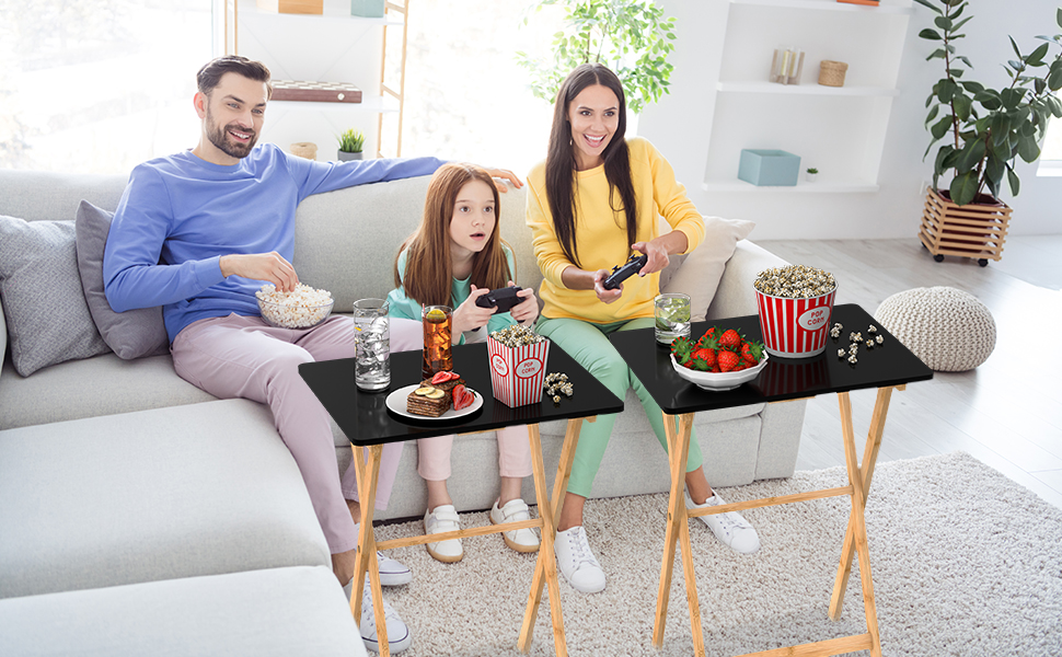 TV tray foldable tables come fully assembled, convenient for indoor or outdoor uses, easy to move around and to utilize just fold it up and down.