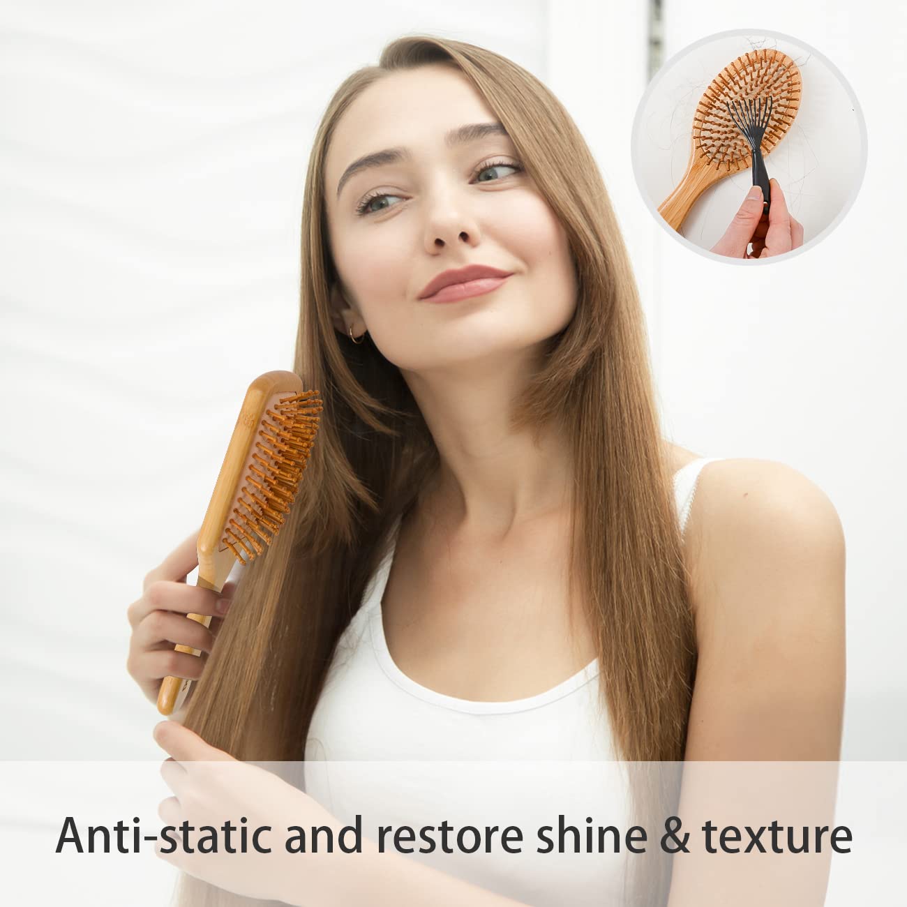 Our wooden hairbrush features a set of teeth that are specially designed to remove tangles without breaking or pulling your hair. The soft, smooth bristles glide through wet or dry hair without pulling.