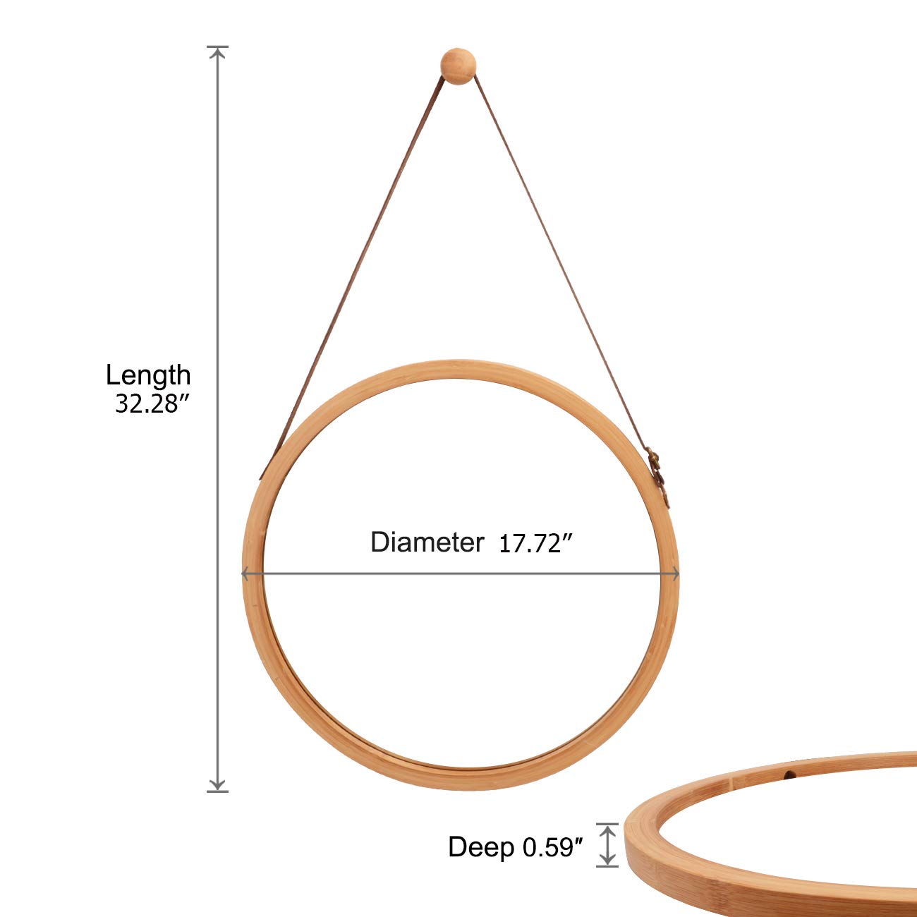 Elegant Design: This circle mirror is crafted from bamboo and finished with exquisite workmanship. The wall mirror provides an elegant and lasting appearance that will complement any decor.