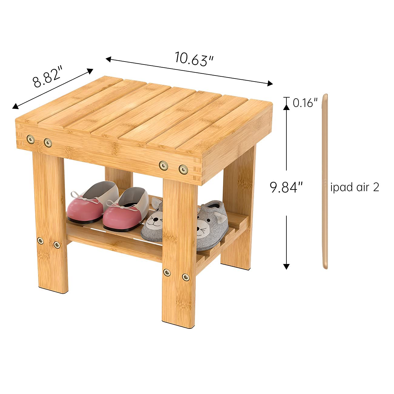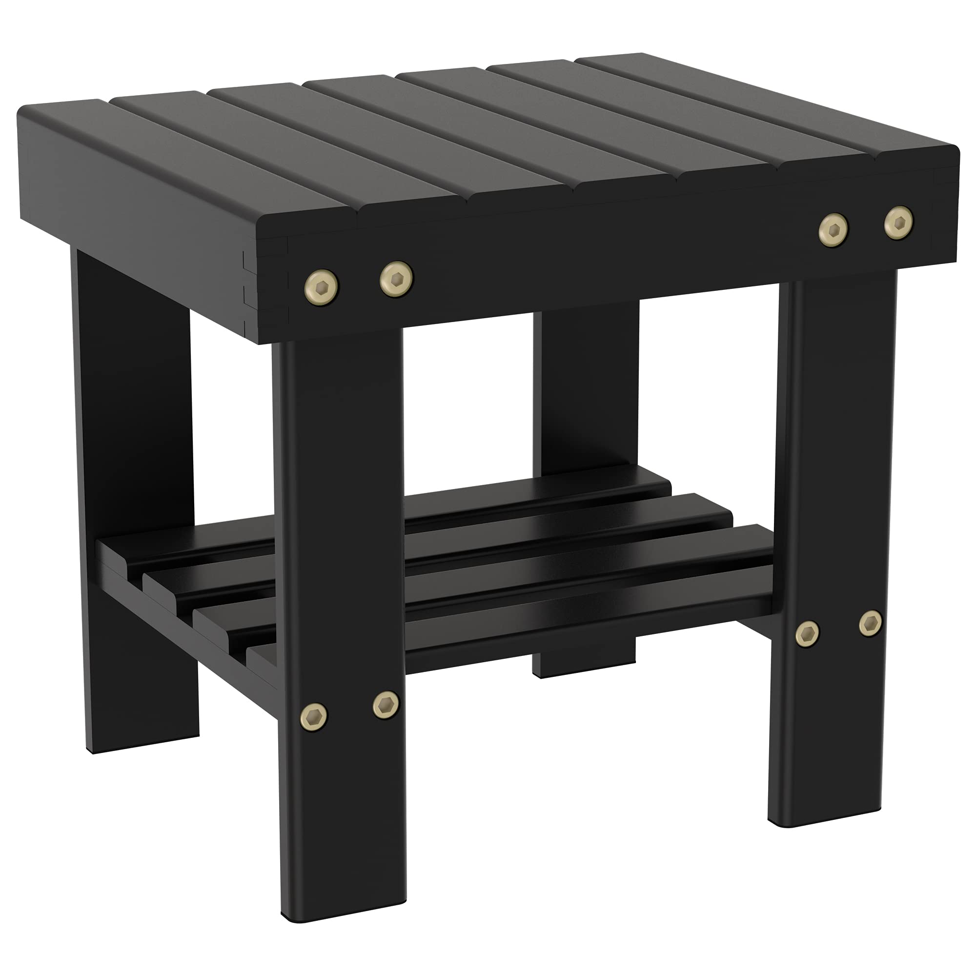 The smooth, curved surface of the wooden shower bench offers a comfortable place to rest during a shower or at any other time. The bench can be used both inside and outside as a side table, stool for shoes, and storage organizer.