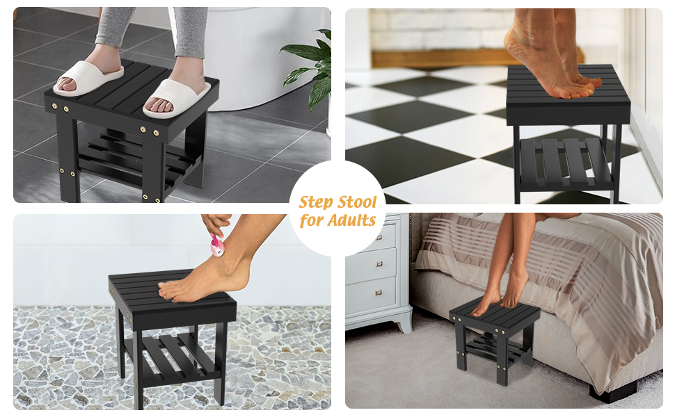 The wooden shower bench with a slatted surface has excellent water resistance. The waterproof coating used on it can not only guarantee long-term use but also prolong its life span.