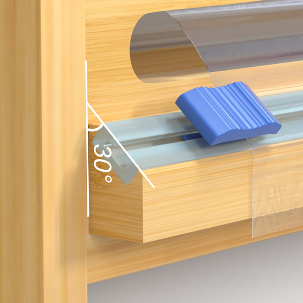 The sliding cutters sit far enough above where the edge of aluminum foil or parchment paper rests and are fixed at a 30-degree angle upward, fitting perfectly angle where cling wrap comes out. Don't ripple foil and cut smoothly.
