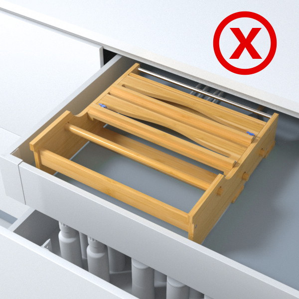 The aluminum foil organization and storage are wall-mounted or standing on the counter, not for the drawer.