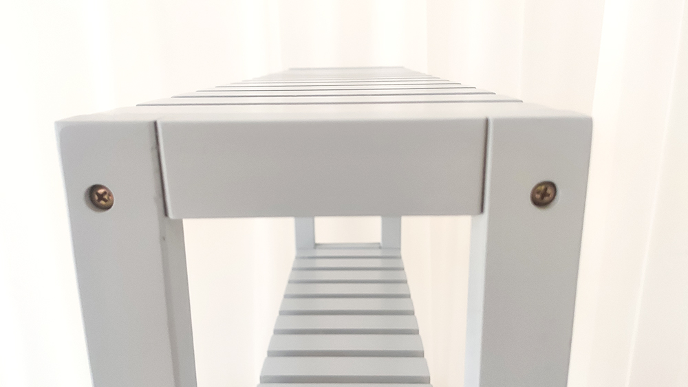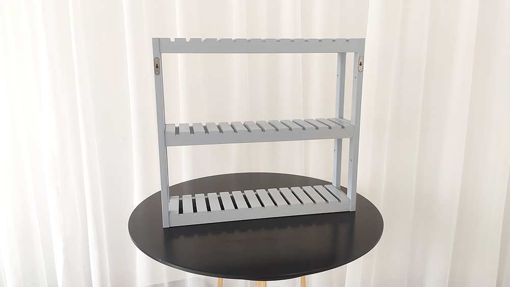 Feito de bambu 100% natural, que é durável, resistente e ecológico. Feito com bom acabamento e cada camada é construída com ripas de bambu, o rack pode oferecer cerca de 44 libras no total.