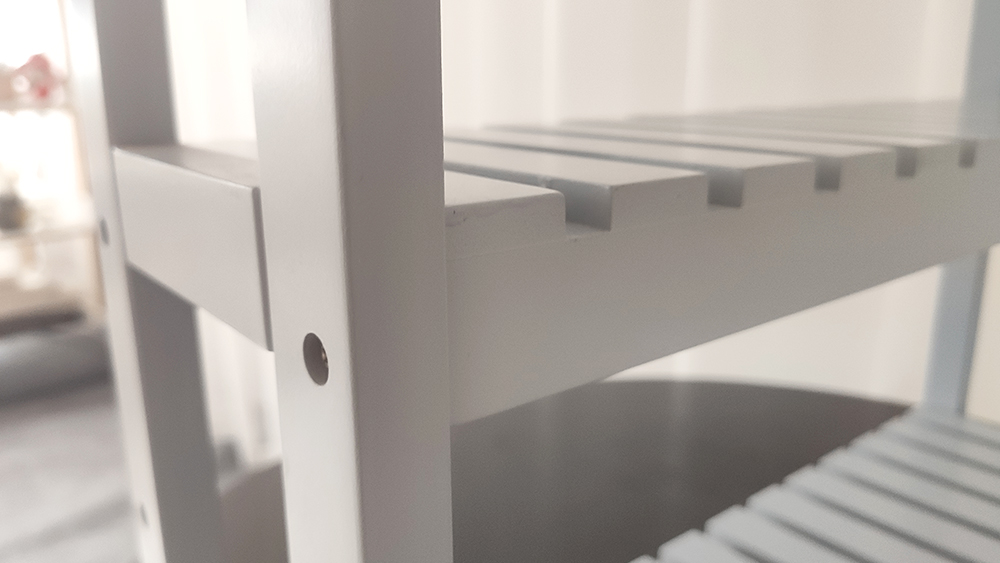 Com sua superfície lisa, este organizador de bambu não causará danos aos seus pertences ou aos seus filhos. A prateleira é à prova de umidade e a superfície é lisa.
