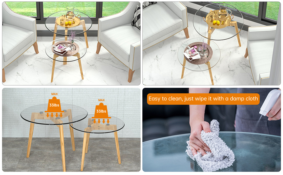 Стол изготовлен из закаленного стекла/МДФ, окрашенного УФ-излучением, что делает поверхность гладкой, безопасной для игр детей и легко чистящейся. Просто протрите его влажной тряпкой. Ножки изготовлены из бамбука; Крепкий, прочный и долговечный.