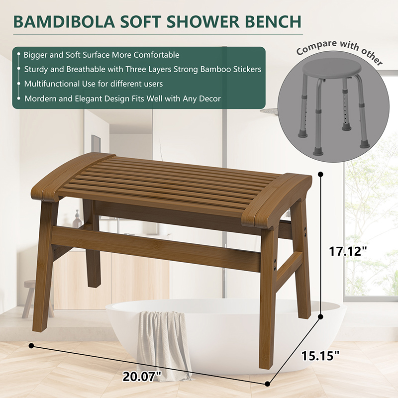 [UNIQUE DESIGN]: our shower seat is modern and sturdy with a breathable structure on the surface, three layers of strong bamboo sticks make it good resilience to relieve the pressure by seating long. Bigger tops more comfortable for your Butt