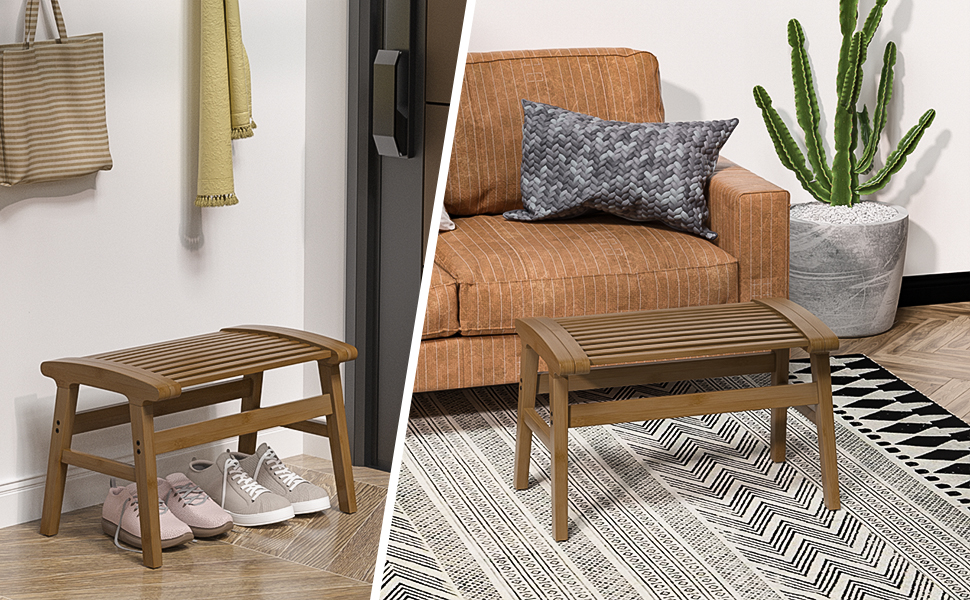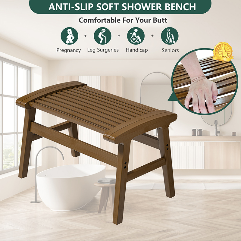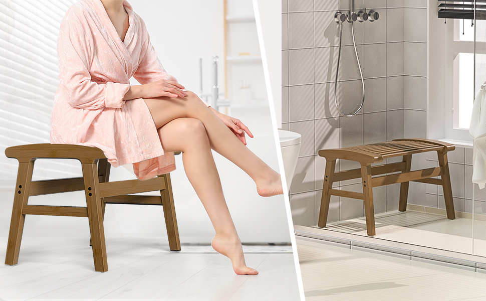 [FUNCTIONAL USE]: Our shower bench seat works well as a shower stool for an inside shower, with its attractive design also can be used as a wooden table stool, children's study stool, balcony rest stool, etc. Suitable for kids and adults in the bathroom, living room, bedroom, balcony, etc.