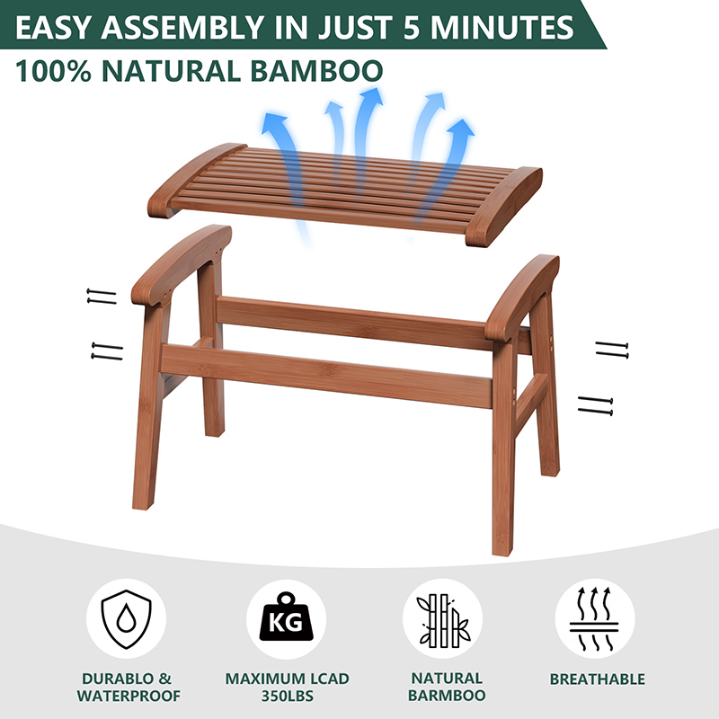 [EASY ASSEMBLE & 350 LBS WEIGHT CAPACITY]: Our shower chair is 100% premium bamboo material, measures 20.07” x 15.16”x 17.16” can hold up to 350lbs, easily assembled in 5 minutes can be used in any place your house.