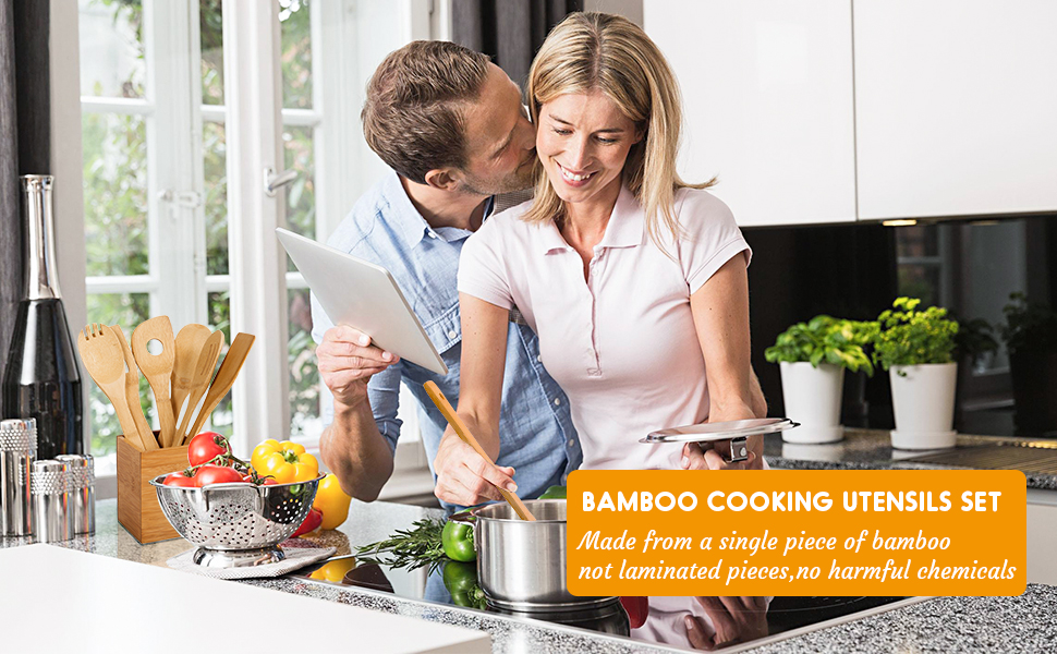 Orolig att produktionsprocessen av bambu köksredskap set innehåller skadliga ämnen? Oroa dig inte, vi använder en hel bit bambu, inte ett laminat, utan lim eller giftiga ämnen.