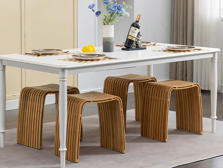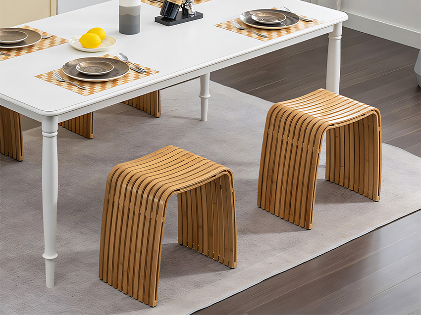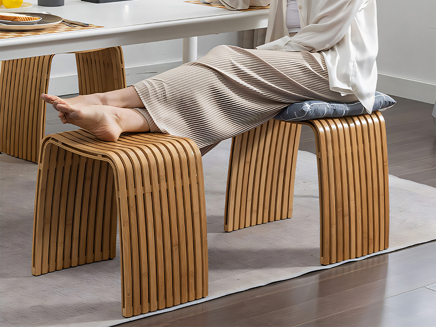 เทคโนโลยีการผลิตด้วยมือโดยใช้ไม้ไผ่มานานกว่า 6 ปีมีความมั่นคงมาก สามารถใช้เป็นเก้าอี้ห้องรับประทานอาหาร เก้าอี้รองเท้า เก้าอี้แต่งหน้า ห้องน้ำ ห้องอ่านหนังสือ หรือห้องนอนได้ ปรับให้เข้ากับแต่ละสถานการณ์