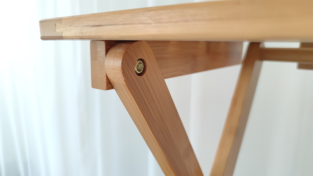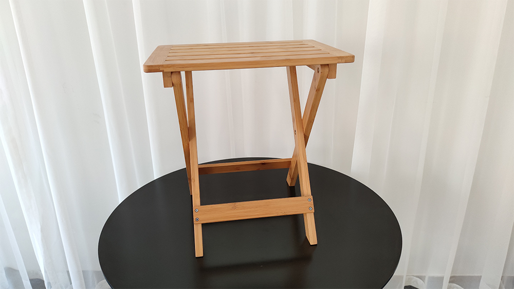 Ang folding table na ito ay gawa sa 100% natural na bamboo Eco-friendly na materyal. Ang mga ito ay gawa sa 5 taong gulang na kawayan, sumasailalim ito sa pagmamay-ari na proseso ng pagmamanupaktura ng Fossilized na ginagawa itong doble ang density ng hardwood. Solid na maliit na mesa, matatag at maganda.